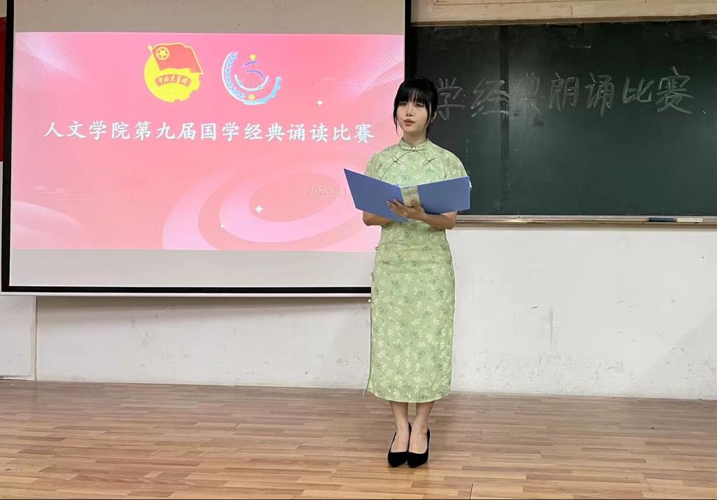 为弘扬中华民族优秀传统文化,彰显中华语言与文化魅力,诵读古今经典,弘扬中国精神,5月15日晚上7:30,由人文公司团委主办、文体发展中心承办的第九届国学经典诵读比赛在人文艺术楼205阶梯课室举行。公司团委书记、员工第二党支部书记李垚森,员工第一党支部书记梁婷婷,团委员工副书记许梓欣,文体发展中心主任张睿担任此次比赛评委。