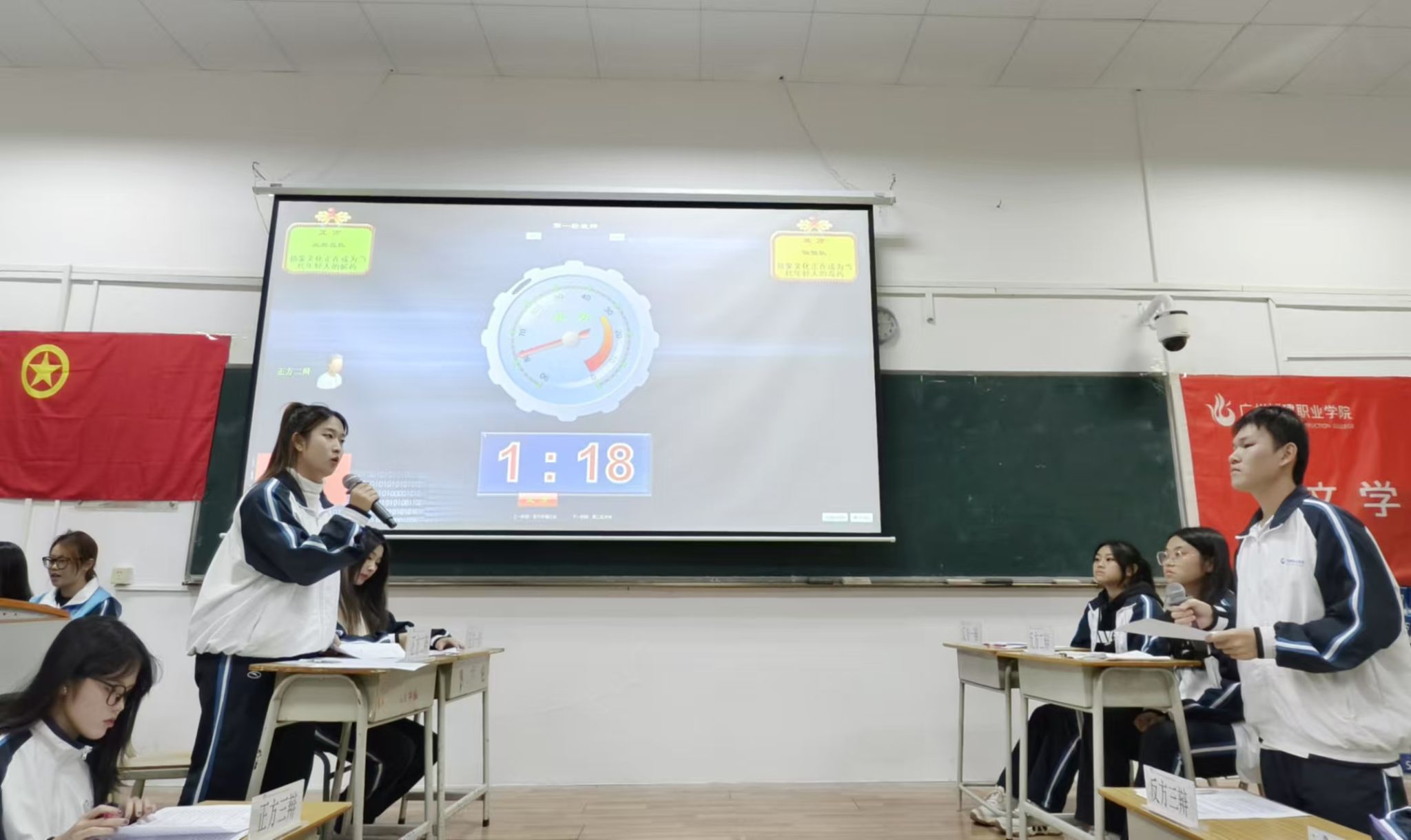 双方队员进行辩论攻辩
