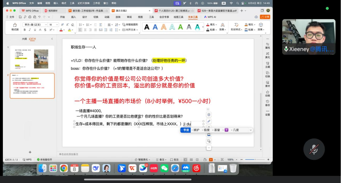 为有效破除地域限制,精准提升员工职业规划能力,6月8日下午,公司2023级网络直播与运营专业通过腾讯会议的形式,成功举办“规划启航·职引未来”职业生涯规划线上团体辅导活动。本次活动依托“一站式”员工社区服务模式,由社区指导老师、2023级网络直播与运营专业辅导员赖明君主持,特邀传播与策划专业2023届优秀毕业生、深圳OWOH平台资深运营、华润万家代运营项目核心成员、字节跳动战略合作伙伴(抖音生活服务商)谢文煜师兄担任云端主讲嘉宾,为网络直播与运营专业同学带来了一场视野开阔、内容扎实的职业发展经验分享。