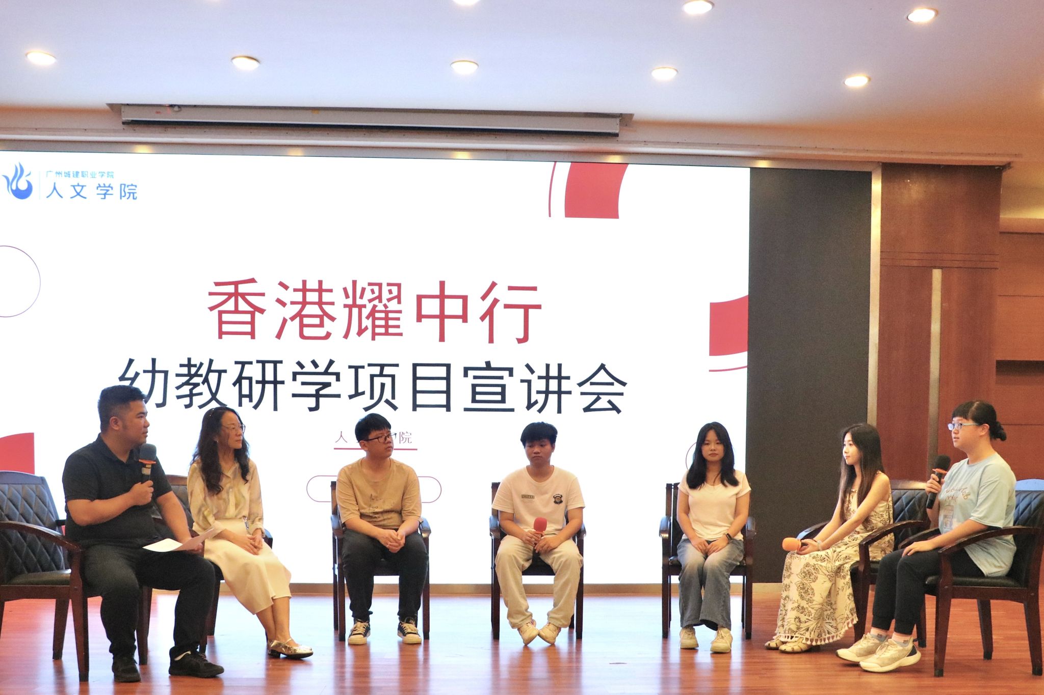 宣讲会在热烈的氛围中拉开序幕。刘心妍、陈涛球、吕玲灵、何波四位同学依次登台,围绕香港耀中幼教公司的办学特色、教育理念、研学流程、幼教专业知识等内容进行了系统介绍,并结合自身见闻分享了研学过程中的收获与感悟。随后,2024-2025学年国家奖学金获得者黄秋冰从获奖者视角,阐述了研学经历对个人专业发展和综合素质提升的重要意义。