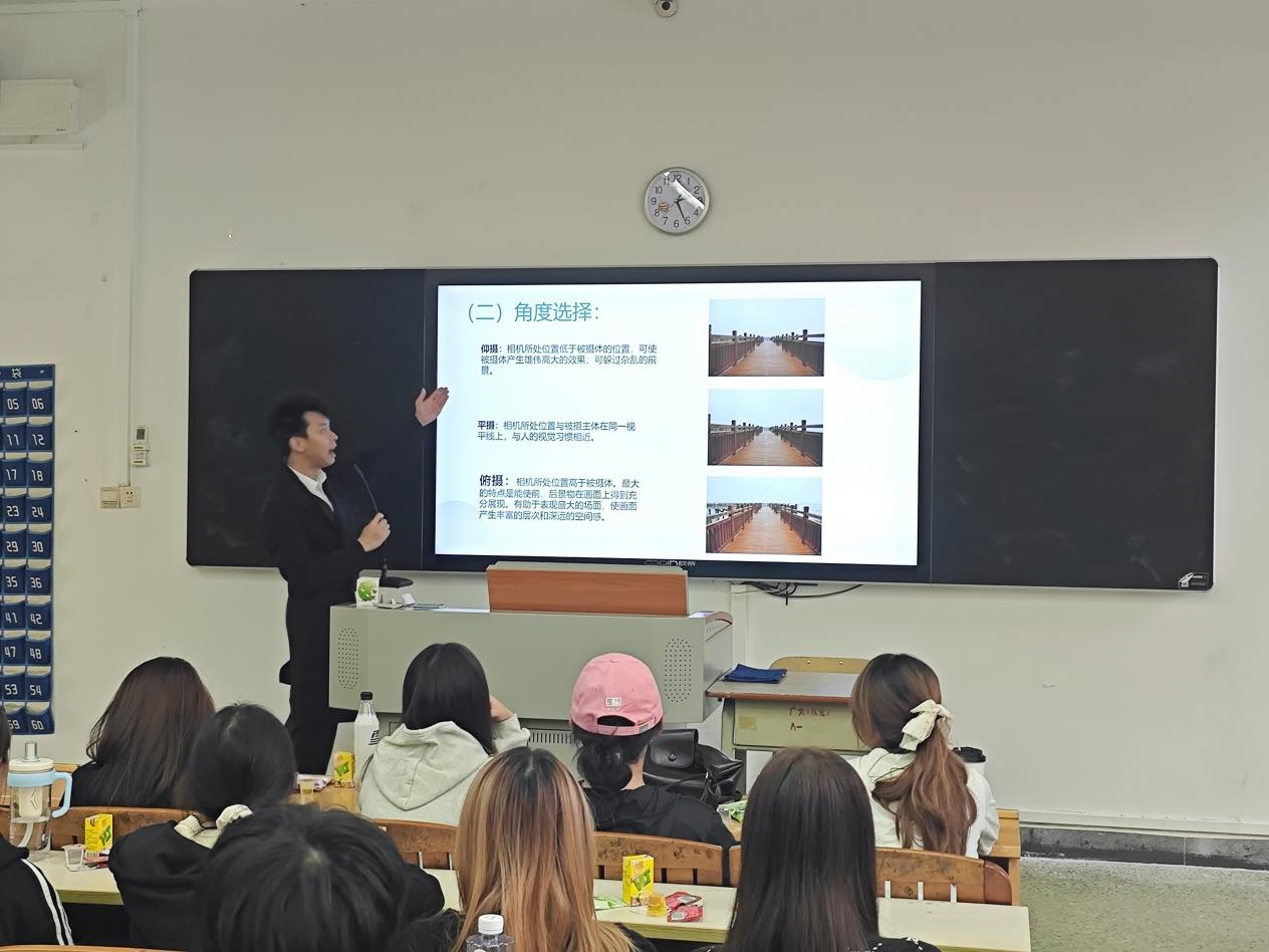 课程伊始,主讲老师李垚森从手机摄影的基础知识入手,为同学们系统地讲解了构图技巧、光影运用、对焦与曝光等核心要领,将复杂的摄影理论转化为通俗易懂的操作指南。李垚森强调,优秀的摄影作品不在于设备的昂贵,而在于发现美的眼睛和表达情感的视角,鼓励大家巧用手中的手机,去捕捉身边的精彩瞬间。