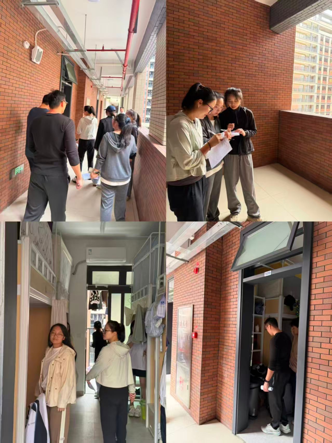 本次检查围绕用电安全、环境卫生等重点环节展开。老师们深入每间宿舍,与同学们亲切交流,了解日常起居情况,并对存在的安全隐患和卫生问题现场提出整改建议。