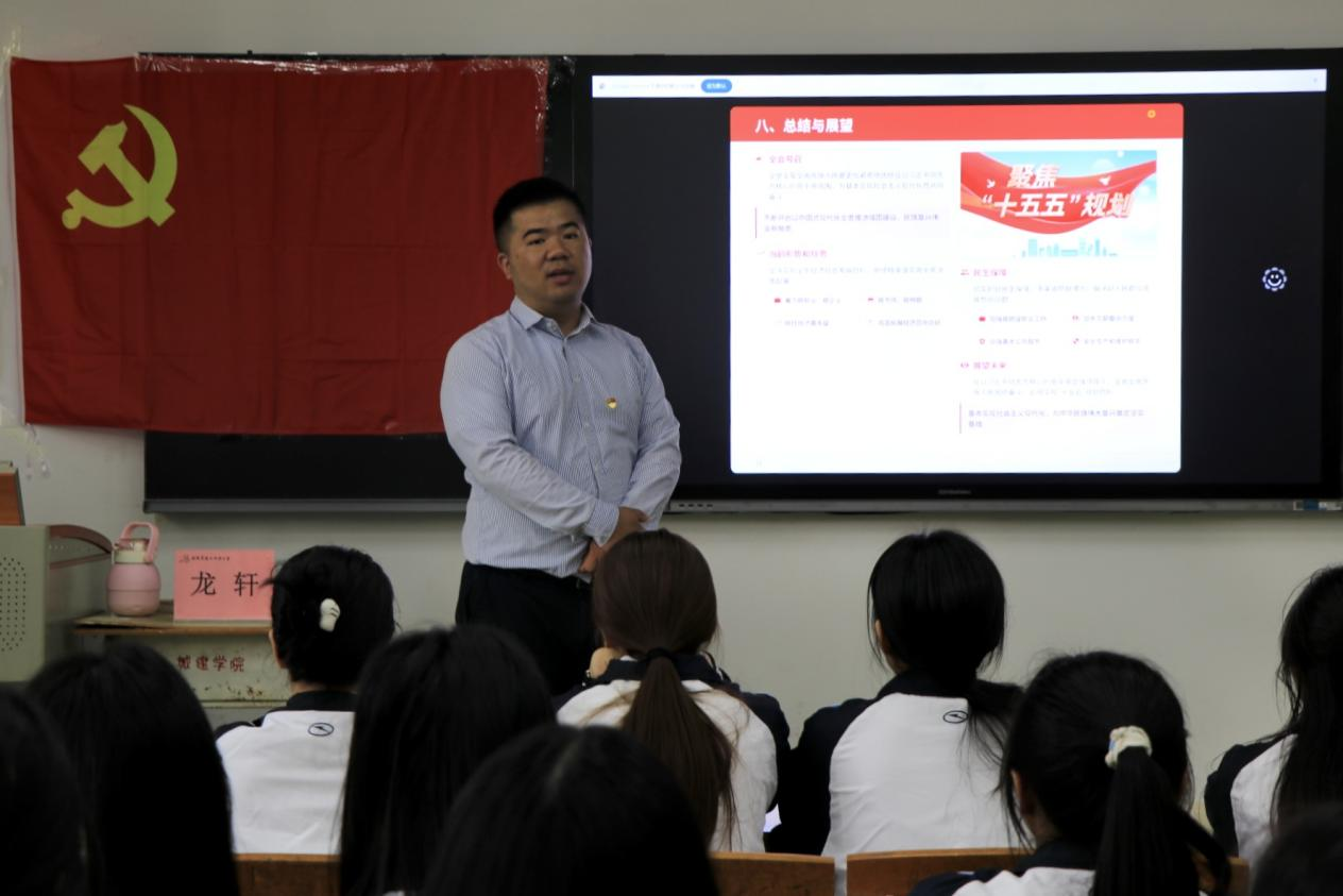 龙轩围绕党的二十届四中全会的重大意义、指导思想和基本原则以及主要目标,结合当前国家发展形势与青年责任担当,系统阐释了全会提出的新思想、新论断、新部署。他以“中国式现代化”为主线,通过历史对照与现实案例,生动解读了全会精神对青年员工成长成才的指导意义,并鼓励同学们将个人发展融入国家发展大局。