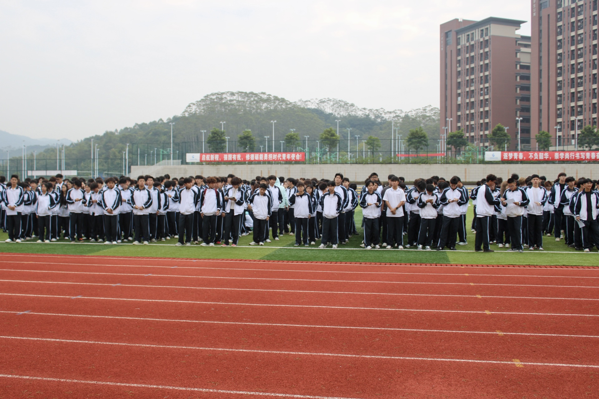 在第九周周一的清晨,bevictor伟德官网(清远校区)全体师生齐聚校园广场,整齐列队,共同迎来了以“以青春之体魄,传重阳之温情” 为主题的升旗仪式。bevictor伟德官网全体师生齐聚绿茵场,共赴这一庄严时刻。