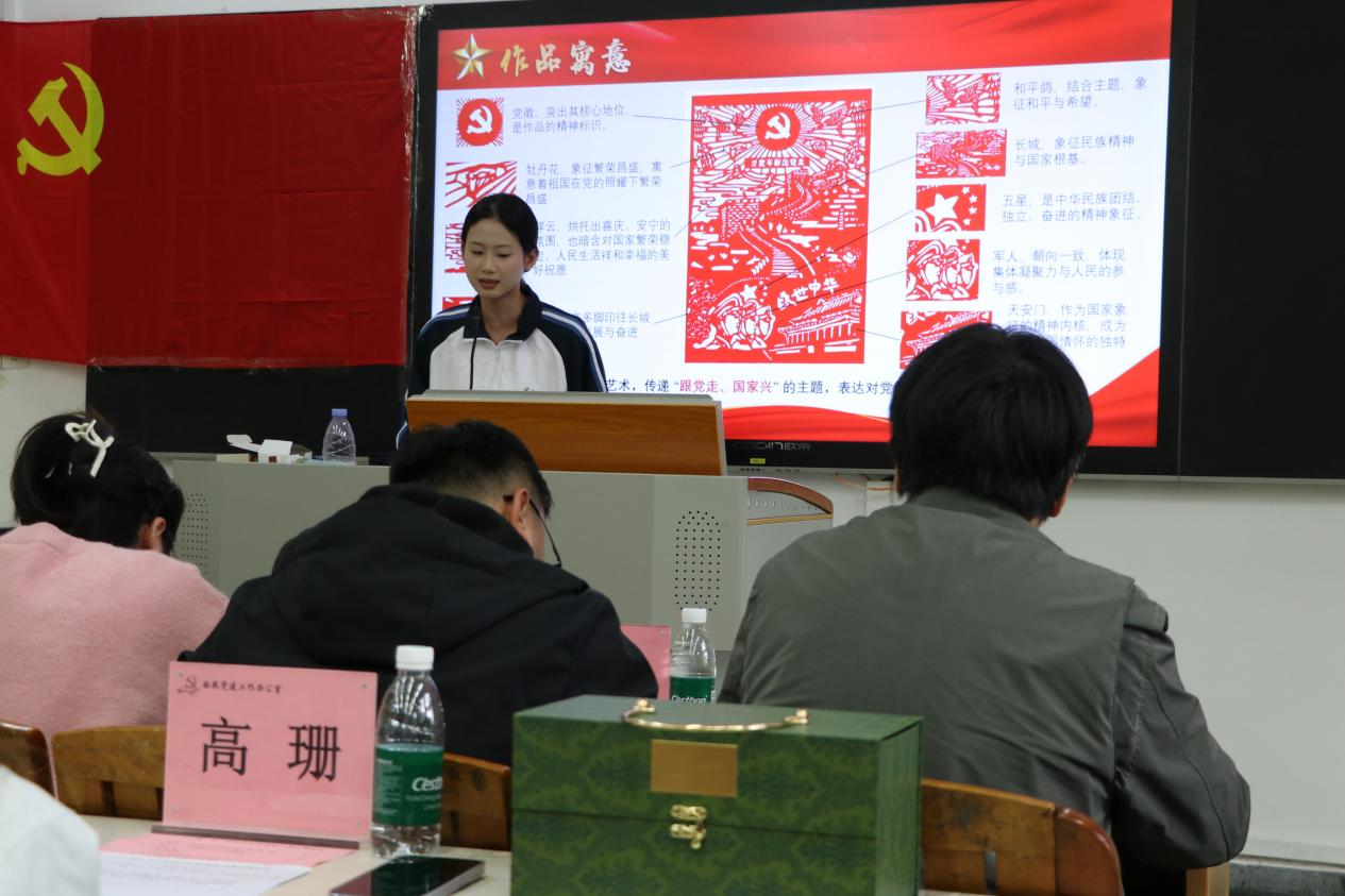 12月10日,“—站式”员工社区“一楼一品”活动之红色剪纸大赛决赛在广州校区人文艺术楼102课室举行,本次比赛邀请了公司社区中心主任谢家俊、公司党委组织员李艳霞、学前教育专业老师陈丹曦和邓楚颖、社区指导老师赖明君、员工第三党支部组织委员郑妙英以及员工第四党支部组织委员高珊七位老师担任评委。入围选手依次上台,围绕作品名称、创作思路与寓意进行3分钟PPT汇报。同学们以刀为笔、以纸为媒,将红色记忆与时代精神凝于指尖,呈现出一幅幅主题鲜明、技艺精巧的剪纸作品。经现场评审,共评选出一等奖2名、二等奖3名、三等奖5名。