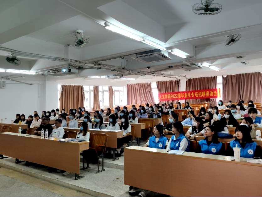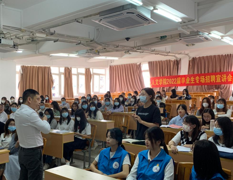 10月27日下午2:30,人文公司在信工财经楼619阶梯教室开展学前教育专业首场招聘宣讲会,中雅教育集团总经理张军平、校企合作部经理张少雪、人文公司副经理彭聪、毕业班辅导员刘颖诗、黎诗敏及2022届学前教育专业员工参加宣讲会。