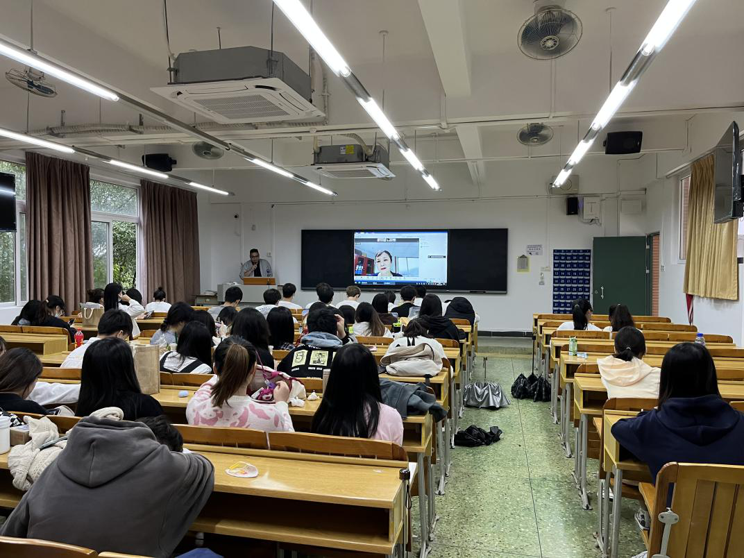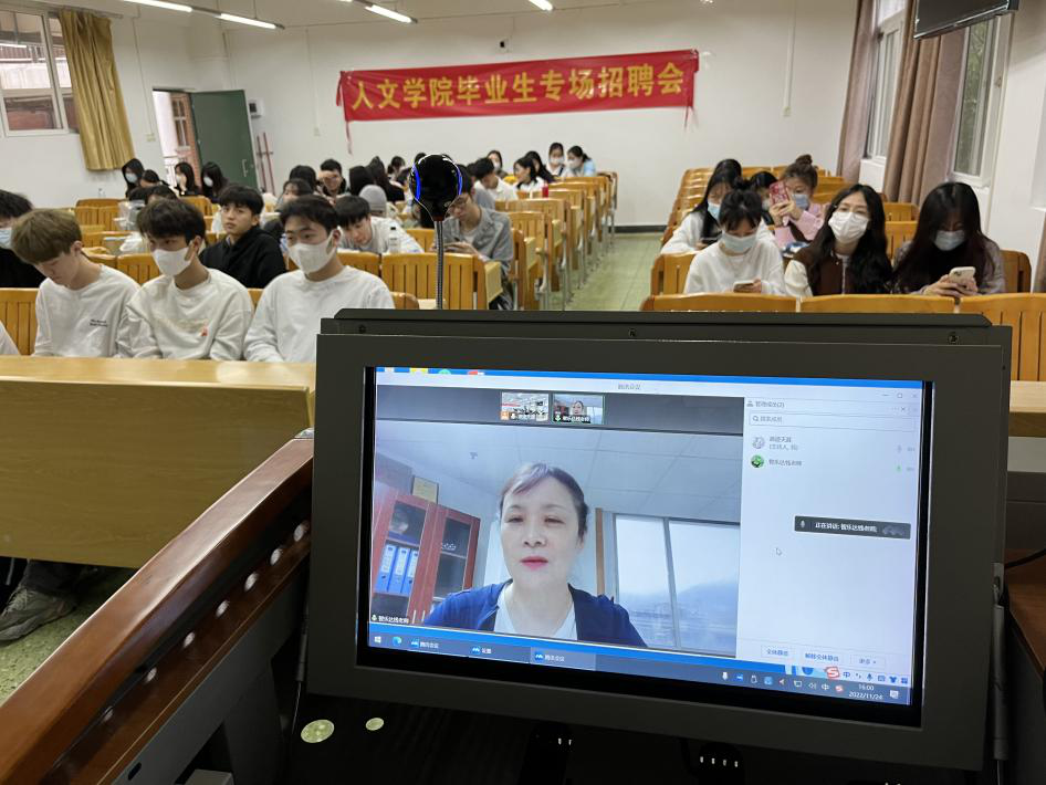 人文公司学工办于11月24日14:30在人文艺术楼424课室召开2023届毕业生第七场招聘宣讲会。为做好疫情防控要求,本次招聘会采用线上宣讲+线下参与的方式进行,智乐达教育投资服务(深圳)有限公司总经理吴彩金女士、招生合作板块负责人钱康、人文公司副经理彭聪、毕业班辅导员刘俊及2023届毕业生参加宣讲会。