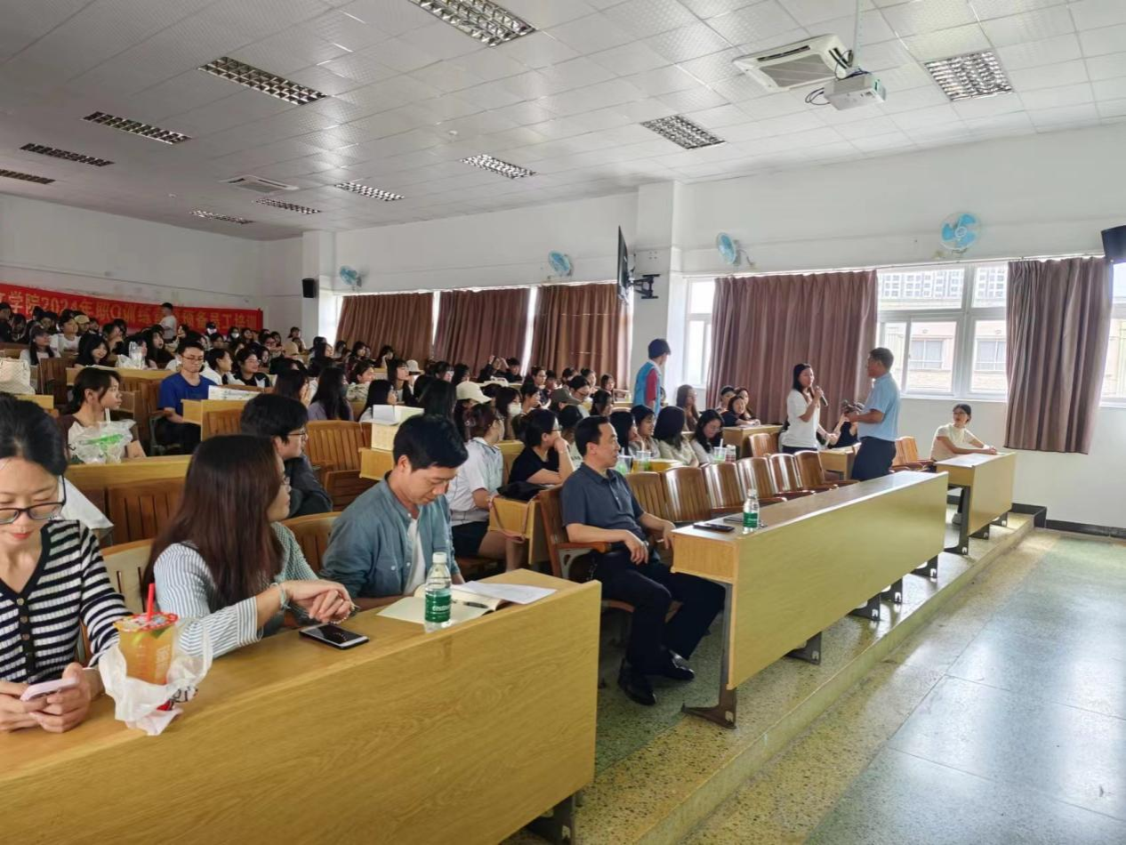 为进一步落实职业教育对接行业企业深化产教融合的要求,以产教融合实践项目帮助解决就业问题,4月11日上午,公司联合中山光阳教育集团在人文艺术楼605课室开展产教融合实践项目宣讲活动。中山光阳教育集团董事长刘一宏,公司经理鲁岩,学前教研室主任苏一波、副主任李元庆,22级全体辅导员以及22级学前教育专业200余名员工参加宣讲会。