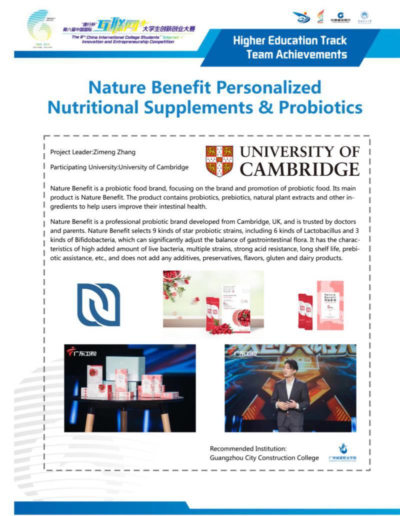 近日,教育部正式公布《第六届中国国际“互联网+”老员工创新创业大赛获奖名单》文件,由公司推荐选送的国际赛道项目《Nature Benefit Personalized Nutritional Supplements & Probiotics》荣获金奖(全国仅两所高职院校获此殊荣)、《Keo Plus LMS》与《Chong Yi Tiao》两个项目荣获铜奖,奖牌总数全国高职排名第二;公司选送的职教赛道项目《蜜月人生——中国生命孕育健康管理引领者》荣获入围总决赛奖(全校唯一)。实现了公司国际赛道获奖数量和等级零的突破和今年职教赛道赛项的最好成绩。此前,公司学子在广东省分赛中大放异彩,荣获银奖2项。
