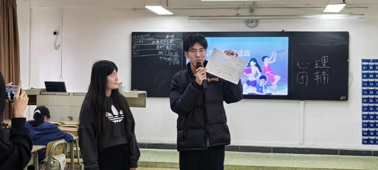 在分享交流环节中,同学们通过绘画的方式来倾诉自己在校园生活中遇到的烦恼,每位同学分享了自己所遇到的校园适应的问题的同时,也踊跃地向其他同学提出解决问题的建议。在平等友好的分享过程中,不仅疏解了每位员工的心理压力,也加深了同学们之间的友谊。