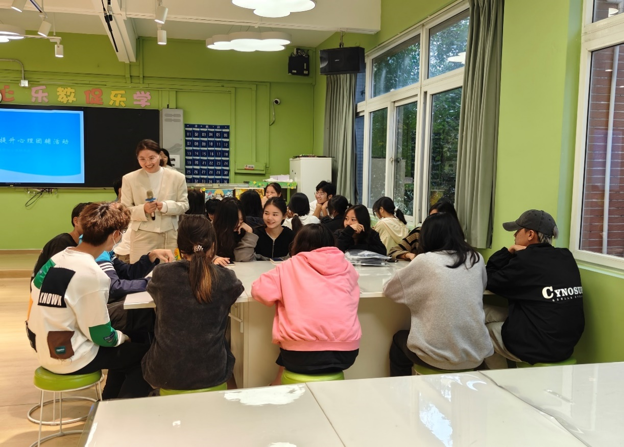 活动开始,同学们分为五个小组,通过“谁最棒”“萝卜蹲”“大风吹”等破冰小游戏拉近了新同学之间心与心的距离,活动现场的氛围欢快,同学们主动参与每项环节的活动,大家也逐渐放松下来,主动交流,敞开心扉。活动过程中,同学们积极主动发掘并赞美他人的优点,踊跃分享自己的观点,大家都在互帮互助,共同完成小组任务。随后,主持人带领大家做了“你说我画”的游戏,增强了人与人之间的沟通与交际能力,教会参与者如何更好地去描述与表达。同学们在团体中体验到了归属感和认同感,在与他人的交流过程中,学会了更好地去倾听和理解他人。同学们在平等友好的交流里,释放了心理压力,也增进了友谊。