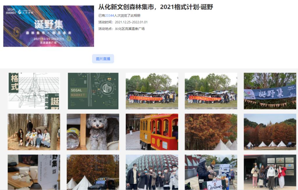 在活动中,同学们有序地进行纪录片、花絮、摄影图集、新闻稿、微信推文等实训任务的素材采集与制作,并对活动现场进行了全程图片直播宣传,点击量高达2万余次。此外,值得一提的是,人文学子的多个优秀摄影作品在“四格集市”的星野纪2021记忆影像征集活动中被选中,于活动当天在现场进行了展览。
