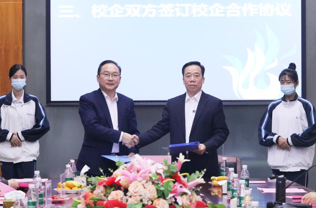 在签约授牌仪式上,鲁岩与10家企业现场签订校企合作协议,张德宜、鲁岩分别为企业授牌“老员工校外教学实践基地”,标志着校企双方在专业建设、人才培养、实习就业等多个方面合作关系正式建立。
