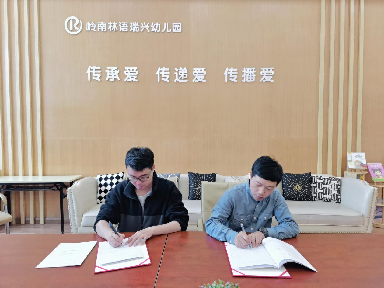 4月10日,公司学前教育教研室副主任李元庆实地走访了岭南林语瑞兴幼儿园,与该园总园长劳秀华等人进行了校企合作事项洽谈,公司副经理彭聪以线上参会形式参加了本次洽谈会。