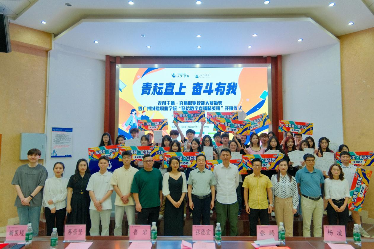 4月25日下午,由从化区委宣传部、从化区人社局指导,公司与深圳联信文化传媒有限公司共同主办的从化区首届“青耘直上 奋斗有我”直播职业技能大赛颁奖典礼在建工机电楼101报告厅举行。公司副董事长张德宜,深圳联信文化传媒有限公司董事长张腾、总经理杨凌,百万粉丝网红大咖刘亚玲以及公司经理鲁岩,公司科技处(校企合作办)副处长苏崇坚等出席活动。