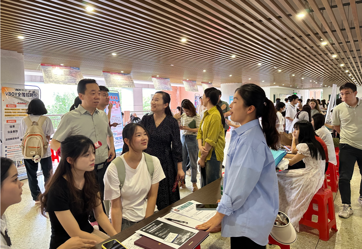 为稳步推进“厂中校”产教融合实践工作,增强员工就业工作实效,5月30日,公司经理鲁岩,副经理王婧、朱丽芳、彭聪,办公室主任李科锋以及各教研室正、副主任和部分教师、辅导员深入公司2024年“厂中校”产教融合实践供需对接专场活动现场,看望慰问参加活动的企业代表。