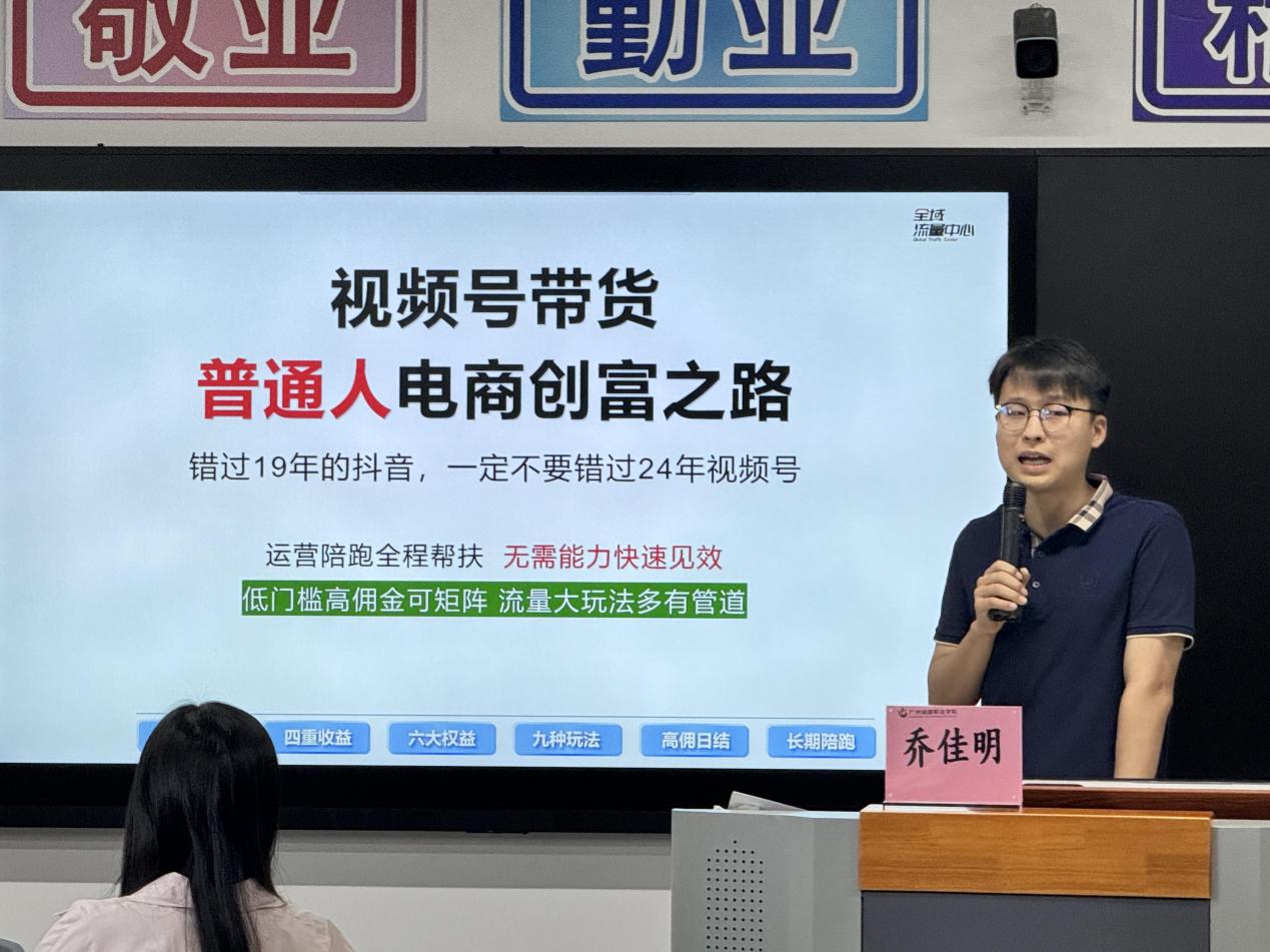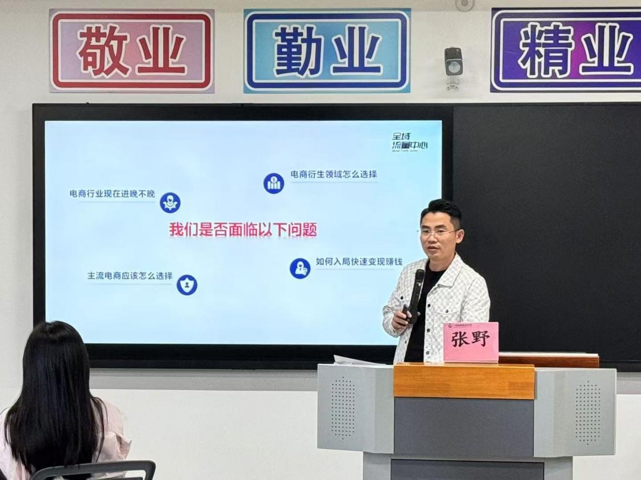 翰略科技负责人庄洲凯作培训介绍,他指出,本次培训内容包含电商行业现状、视频号生态剖析、校企合作模式、视频号运营等方面,希望本次培训活动能够帮助大家提升专业实践能力,并应用于日常的教学过程,培养更多适合于市场需求的优秀电商直播人才。其后,运营总监张野作《视频号风口及前景》专题培训,让老师清楚了解行业现状和发展趋势;视频号读稿带货模式的创始人、运营督导乔佳明作《视频号运作基本逻辑》讲解培训,让老师们掌握视频号运营的基本技能;项目经理黄晓丹女士则进行视频号平台短视频与直播大赛动员及答疑。