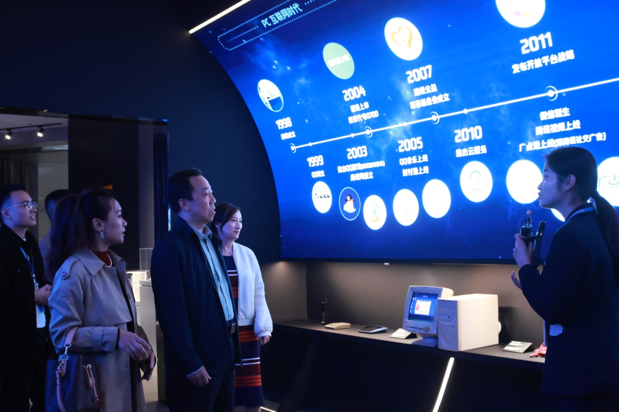 座谈结束后,公司领导班子和师生代表一行还在腾讯云教育中心领导的培同下参观了腾讯集团工作环境和腾讯科技展厅,亲身感受到了腾讯的企业文化、技术创新氛围及取得的辉煌成就。