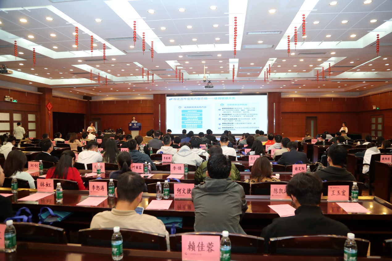 鲁岩代表公司致辞。他首先对远道而来的企业嘉宾表示热烈欢迎。他指出,公司始终以产教融合的政策为导向,持续推进“厂中校”、“校中厂”多元化校企合作模式,积极对接粤港澳大湾区建设、“百千万工程”、“双百行动”等重大战略,与企业共建产教融合共同体,开展直播、乡村振兴、文化创意、体育健康等领域的技术培训、社区服务、文化帮扶等项目,实现了“教、学、研、产”一体化发展目标。他表示,展望未来,公司将同广大企业一道秉持“合作、共赢、创新、发展”的理念,在团队互聘、课程共建、资源共享、成果共创、技术服务、成果转化等方面迈出更大步伐,让公司的智力资源与企业的市场需求紧密结合,让人才培养更精准贴合产业发展需求,实现校企双方的合作共赢。