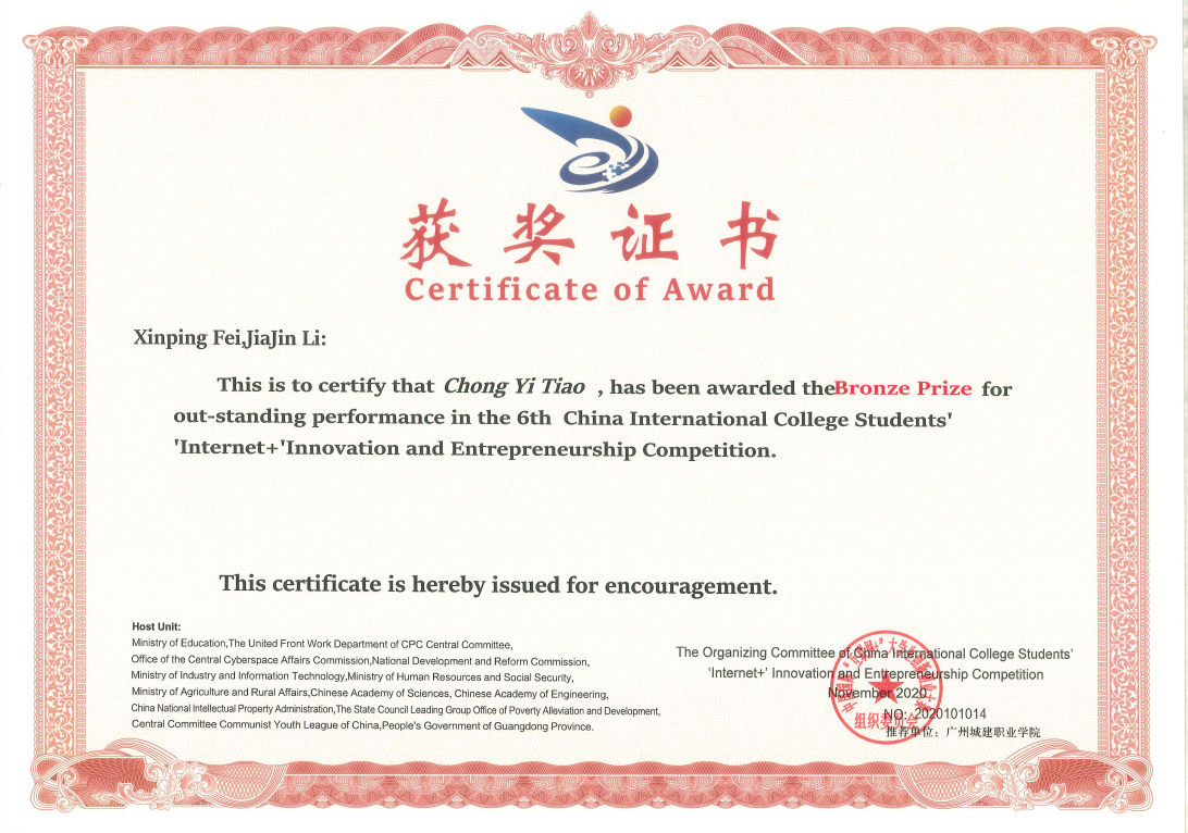 第六届中国国际互联网+老员工创新创业大赛国际赛道全国铜奖