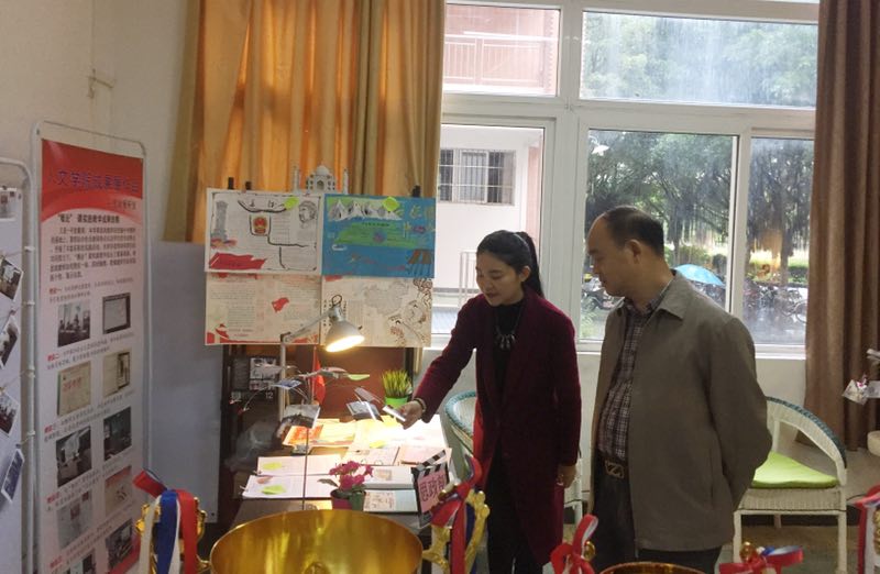3月31日至4月20日,人文公司在人文艺术楼119实训室举办2016-2017学年第一学期实训成果展。期间,董事长刘国生,公司党委书记、副董事长杨清国,实训与设备处处长何乃宝、副处长潘丹,在人文公司经理鲁言、副经理孙欢欢陪同下现场指导此次实训成果展。