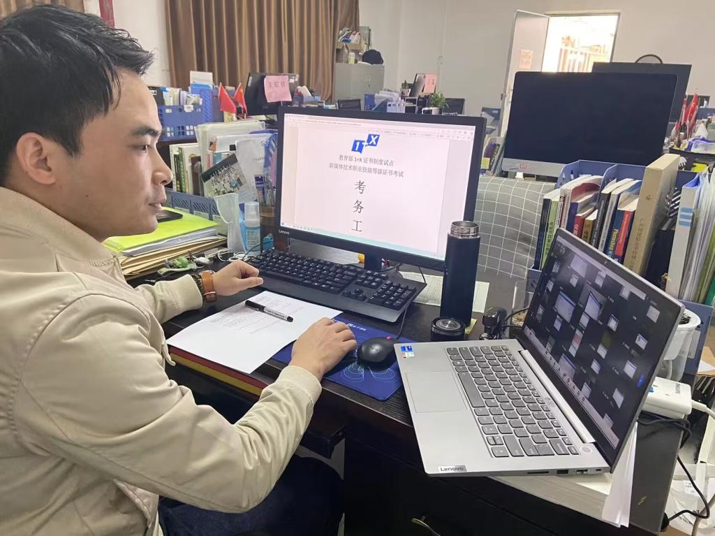 公司高度重视此次“1+X”考试,从员工培训到资源协调均给予了大力支持。考前,公司领导带领教研室老师全力做好组织报名、员工培训、考务筹备等一系列工作,确保考试严谨有序进行、考试服务保障到位。李锦洪和张琴琴两位老师积极组织员工开展考前集训,帮助员工梳理知识点,熟悉考试平台的操作流程。因受疫情影响,临时转为线上考试,两位老师提前2天下载监考设备、组织员工测试考试环境,并制定了严密应急预案。考试中,监考老师严格遵守工作流程,确保考试软件和系统稳定运行,整个过程采用腾讯会议实行监控,各类数据备份有效,服务保障到位,考试秩序良好。