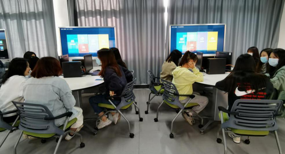 新媒体专业群利用省级民办专项教育基金新建了融媒体实验(训)室、一体化数字高清全媒体演播室、创意策划实验(训)室等智慧实验(训)室,可满足现实情景教学、课堂互动教学、课堂自动录制、学情数据分析、实训室双向互动、模拟岗位等功能于一身,打造项目教学、生产性实训、岗位认知、小组教学等一体化智能综合教育管理平台,构建师生互动信息化教学环境,实现教师 “教练+队员”、员工上课如“上岗”的教学目标,让教师与员工零距离接触,有效激发了员工的学习兴趣。同时,该智慧实训室还将员工的信息、日常行为数据与公司的其他实训室互联互通,打通信息孤岛,直观高效、协同互动,实现无纸化办公。