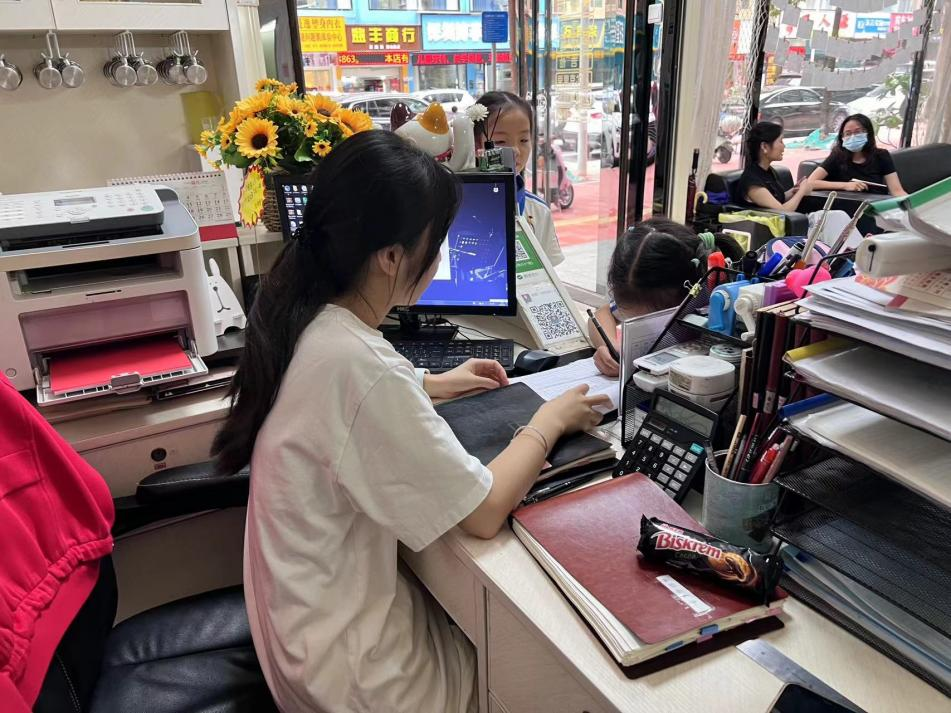 陈佩珊同学在课后与家长和员工沟通